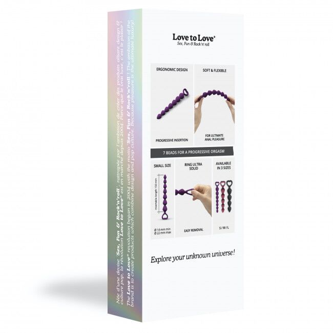 Анальний ланцюжок Love To Love BING BANG S доступний у трьох різних варіантах, що дозволяє вам обрати найбільш підходящий для вашого рівня досвіду та вподобань. Пам’ятайте, що вибір розміру може суттєво вплинути на ваші відчуття, тому обирайте з розумом!