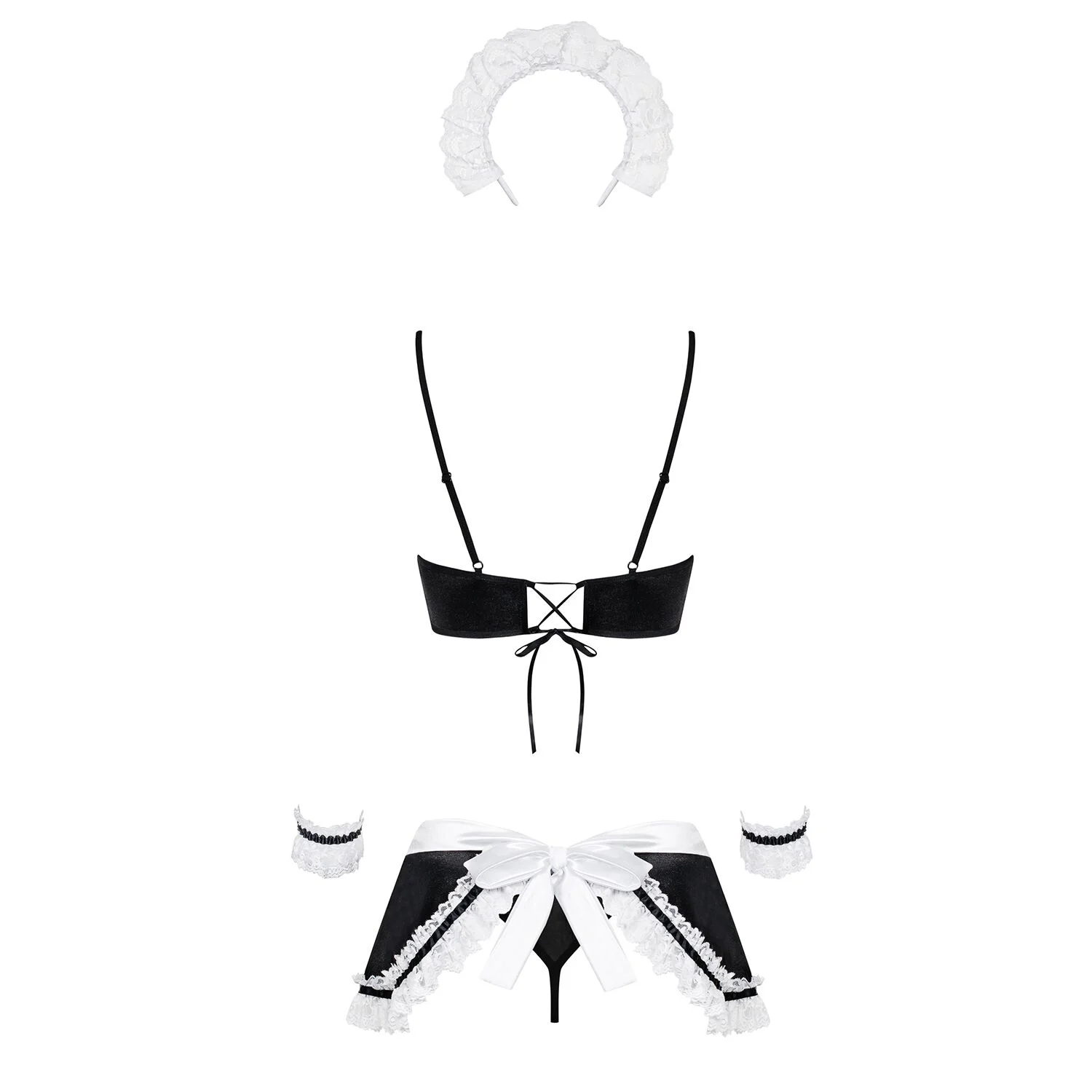 Атласний еротичний костюм покоївки Obsessive Maid set S/M: Звабливість у кожній деталі
