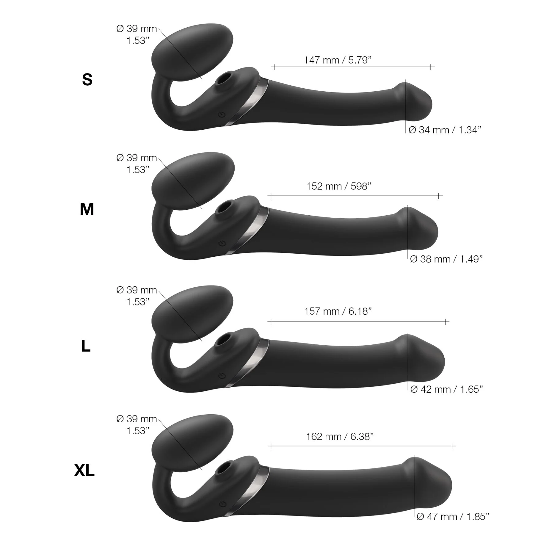Безремінний вібрострапон з вакуумною стимуляцією Strap-On-Me MULTI ORGASM Black S
