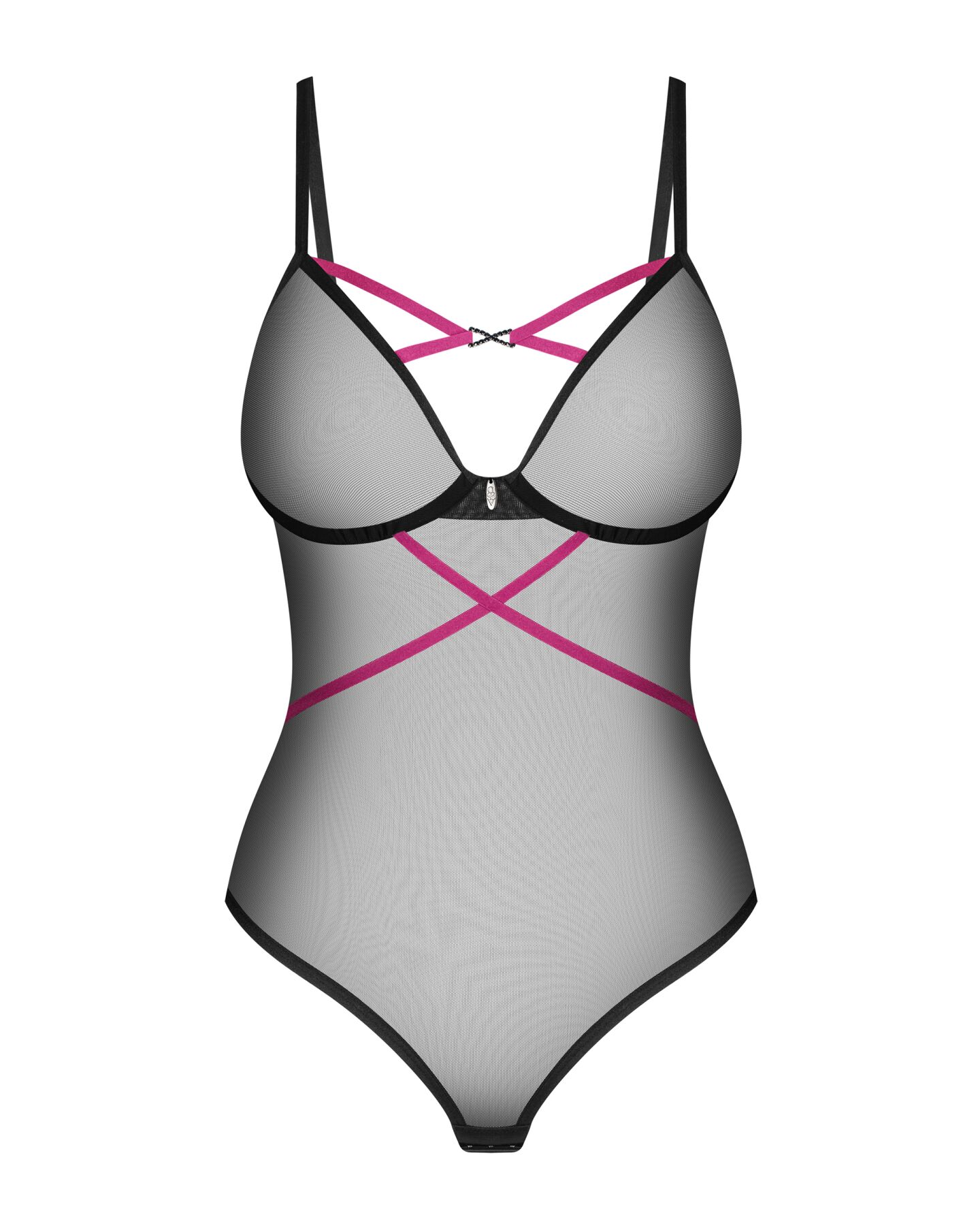 Боді Obsessive Novenes teddy виготовлено з ніжної прозорої сітки, яка м’яко облягає тіло, створюючи ефект другої шкіри. Чорний колір виробу надає йому загадковості, а тонкі пурпурові стрічки додають родзинки, акцентуючи увагу на найпривабливіших частинах вашого тіла. Ця модель чудово підходить для романтичних вечорів, коли важливо не лише виглядати, але й почуватися впевнено.