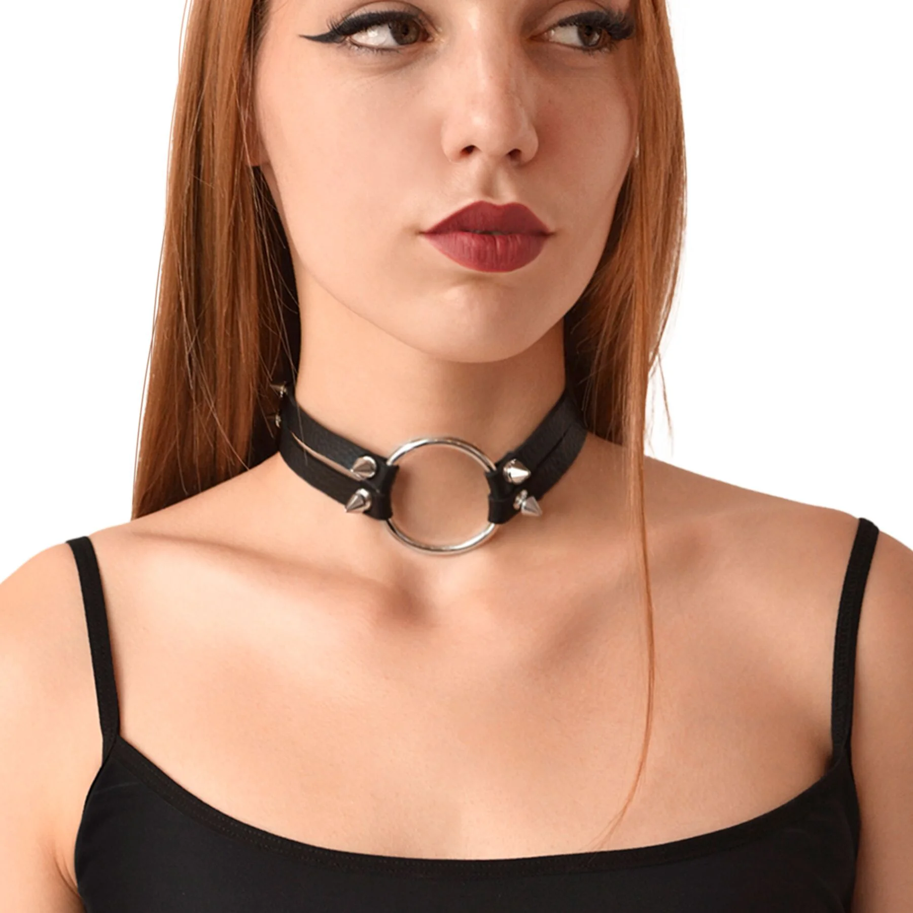 - Стильний дизайн: Металеві кільця та шипи додають елементу бунтарства, що робить чокер ідеальним для сміливих особистостей.