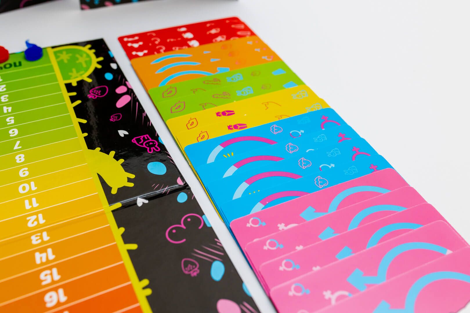 - 176 карток: У комплект входять картки шести різних типів, які містять більше ніж 600 слів і фраз, що стосуються сексу та інтимності.