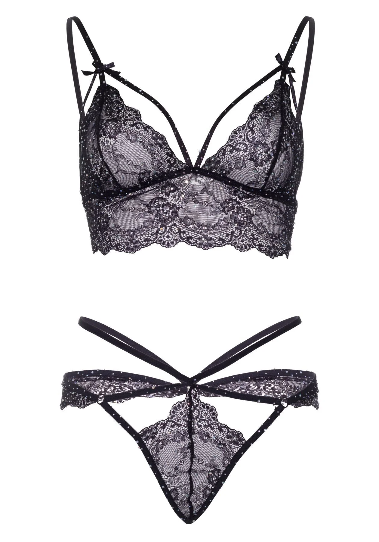 Еротичний комплект зі стрепами та стразами Leg Avenue Ready Or Not L Black