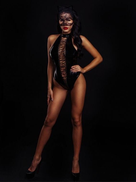 Цей еротичний костюм складається з двох основних елементів: лакової боді та мереживної маски з вушками. Кожен з цих компонентів доповнює один одного, створюючи неповторний образ, що запам’ятається надовго.