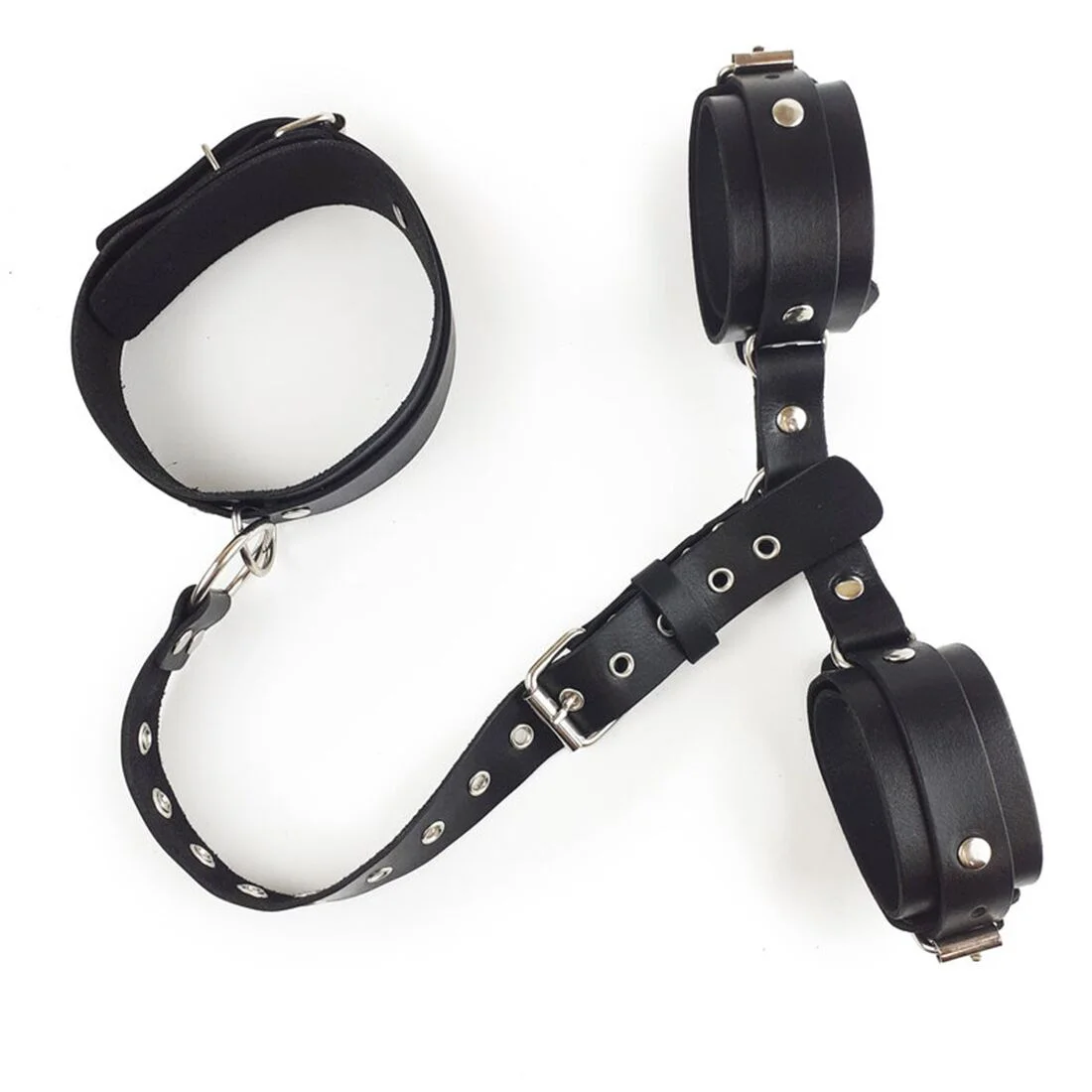 Фіксатори для шиї та рук Art of Sex – Bondage Set з натуральної шкіри