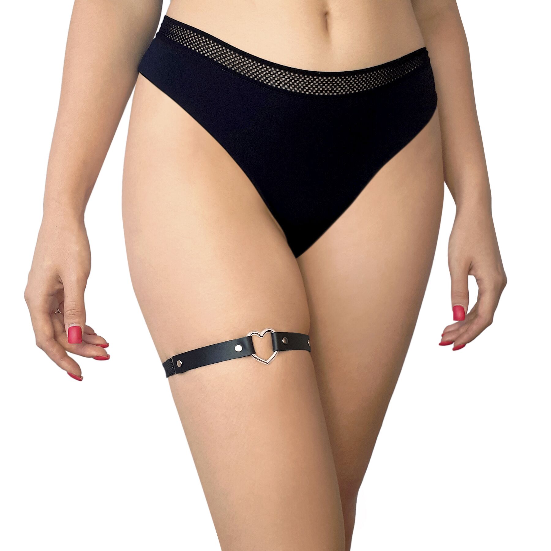 Натуральна шкіра, з якої виготовлено гартер, забезпечує не тільки стильний вигляд, але й довговічність. Вона м’яка на дотик, що робить носіння аксесуара комфортним, навіть протягом тривалого часу. Металеве сердечко, яке служить елементом декору, додає нотку романтики та грайливості, підкреслюючи жіночність та привабливість.