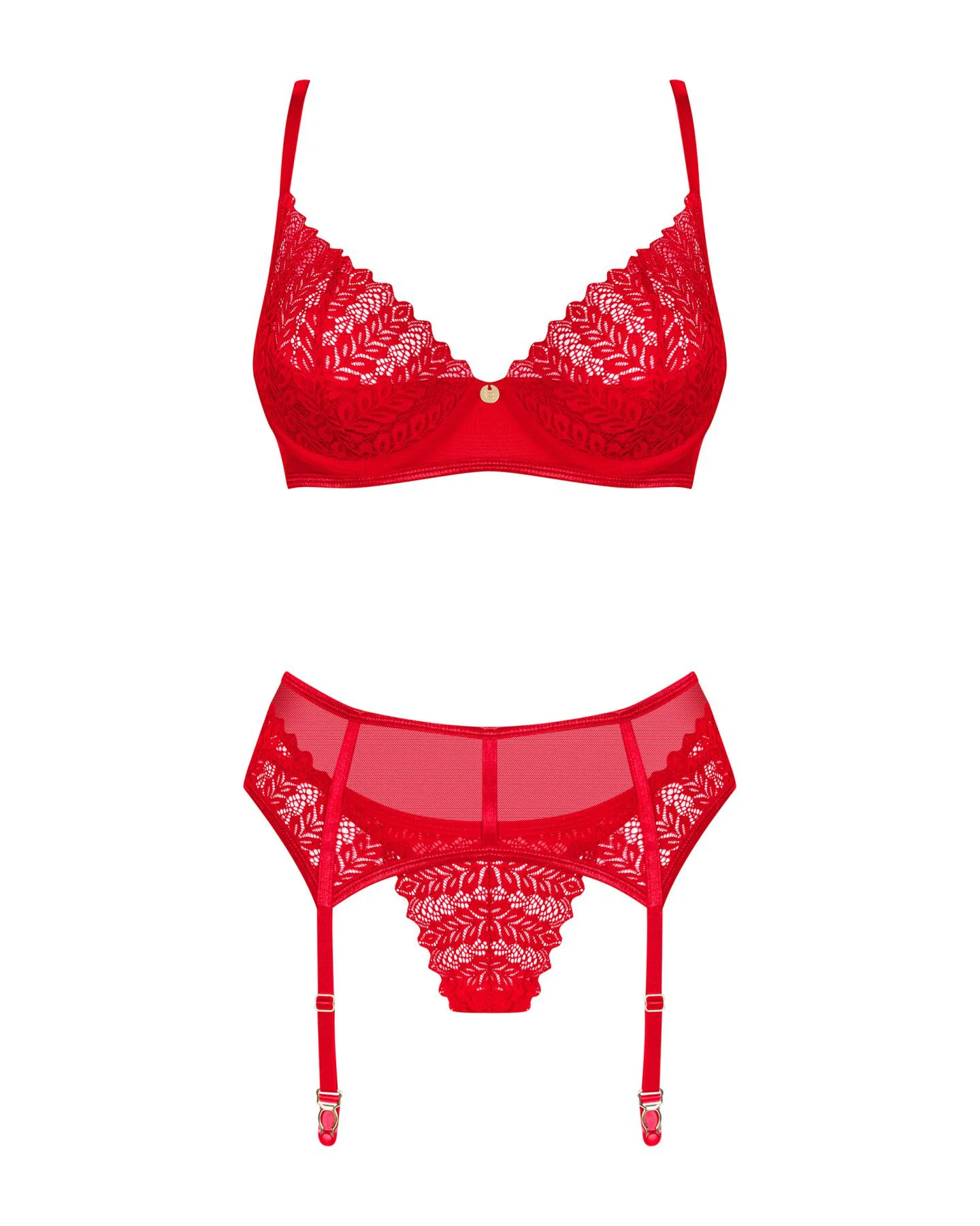 Комплект білизни Obsessive Ingridia 3-pcs set – це ідеальний вибір для тих, хто цінує естетику та комфорт у повсякденному гардеробі. Цей вишуканий набір, що включає бюстгальтер, стрінги та пояс для панчіх, створено з урахуванням сучасних тенденцій моди та комфорту. Виготовлений з високоякісного поліаміду з додаванням еластану, він забезпечує зручну посадку та довговічність навіть при щоденному носінні. Червоний колір комплекту викликає відчуття класичної елегантності та водночас додає нотку сміливості та експресії у ваш образ.