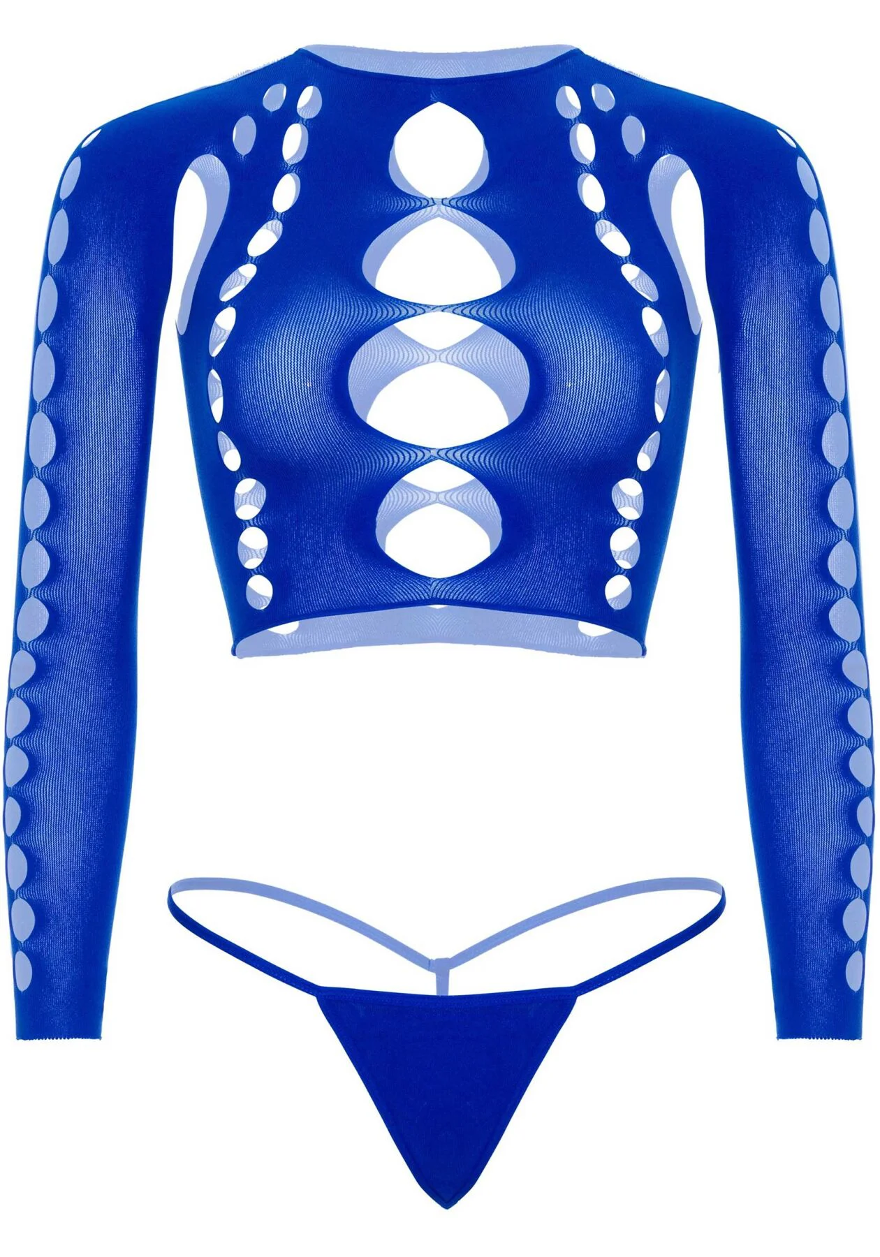 Комплект Leg Avenue: Топ з довгими рукавами та стрінги в королівському синьому кольорі