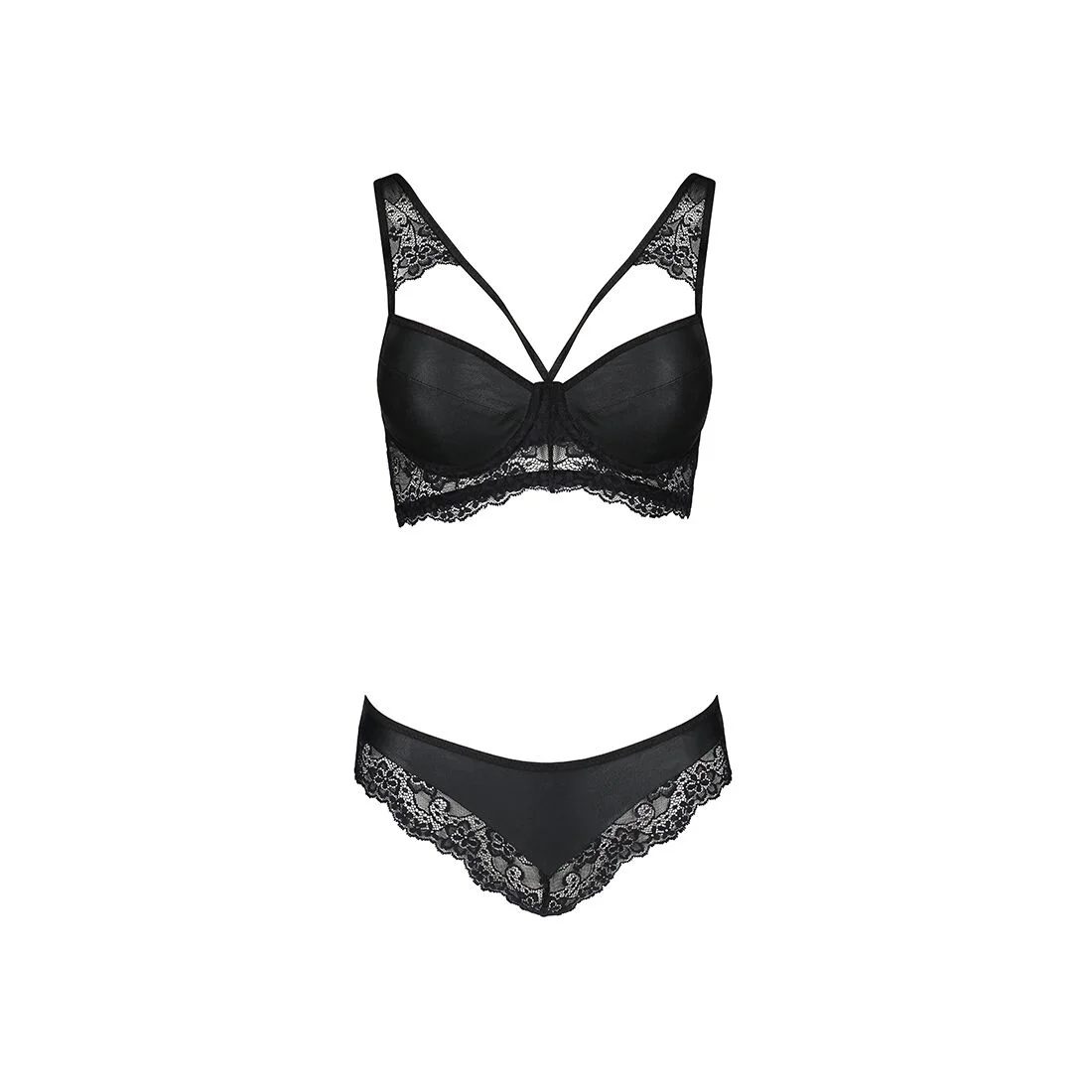 Комплект з еко-шкіри та мережива Loona Set black S/M – Passion, бра і трусики: