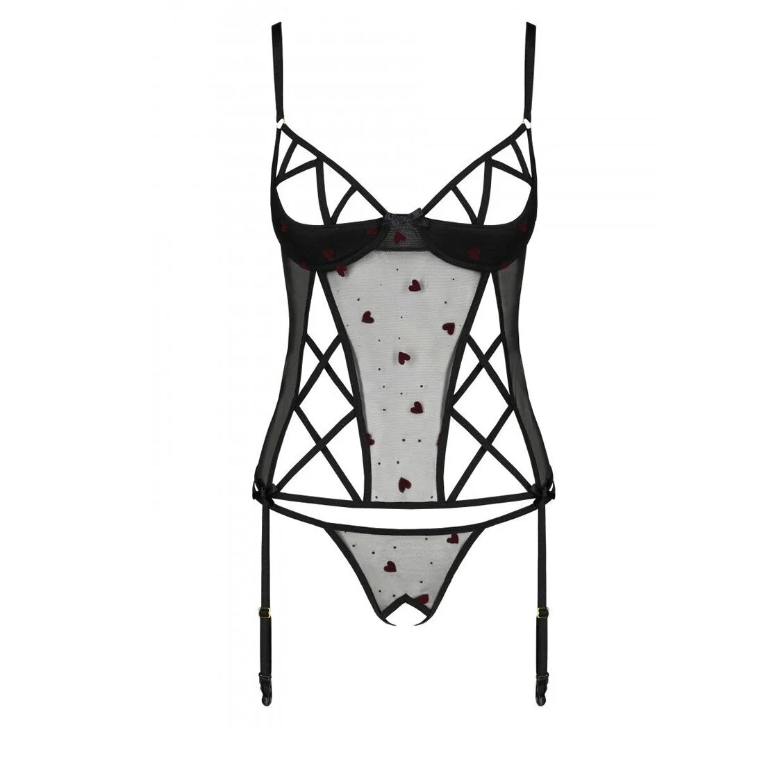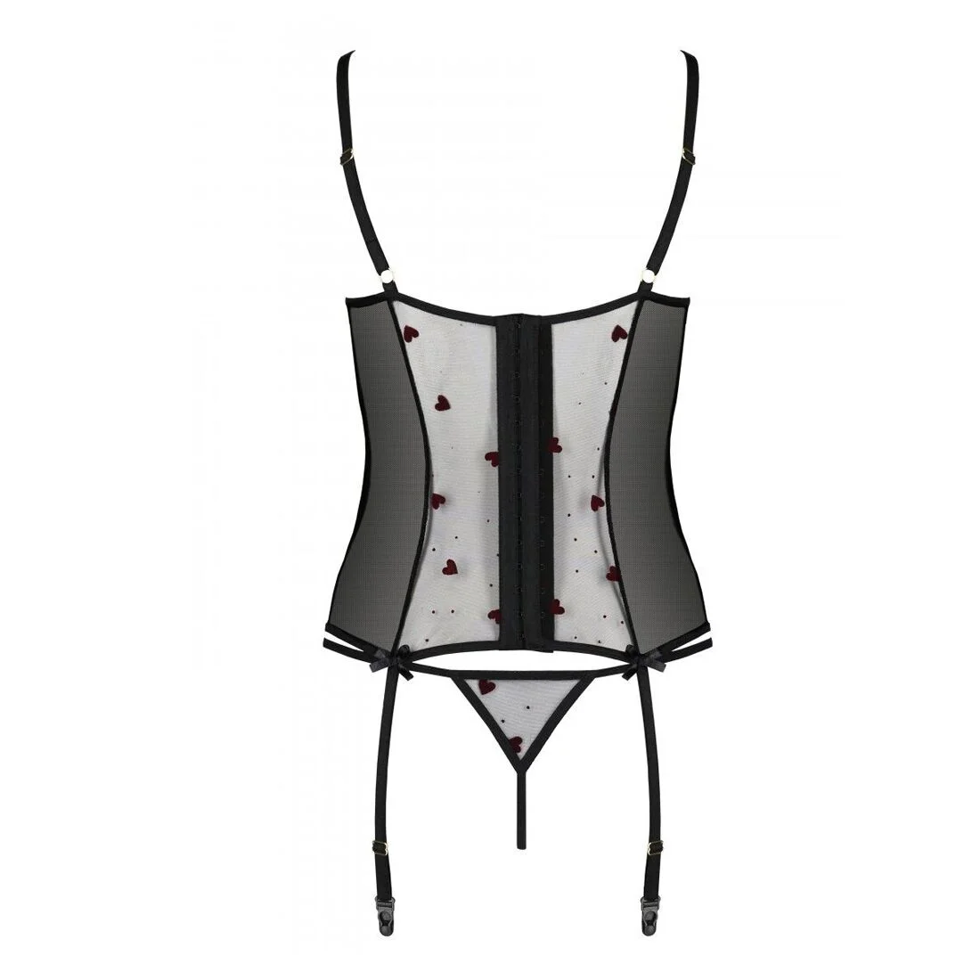 Корсет з підв’язками та стрінги Passion LOVELIA CORSET S/M, black