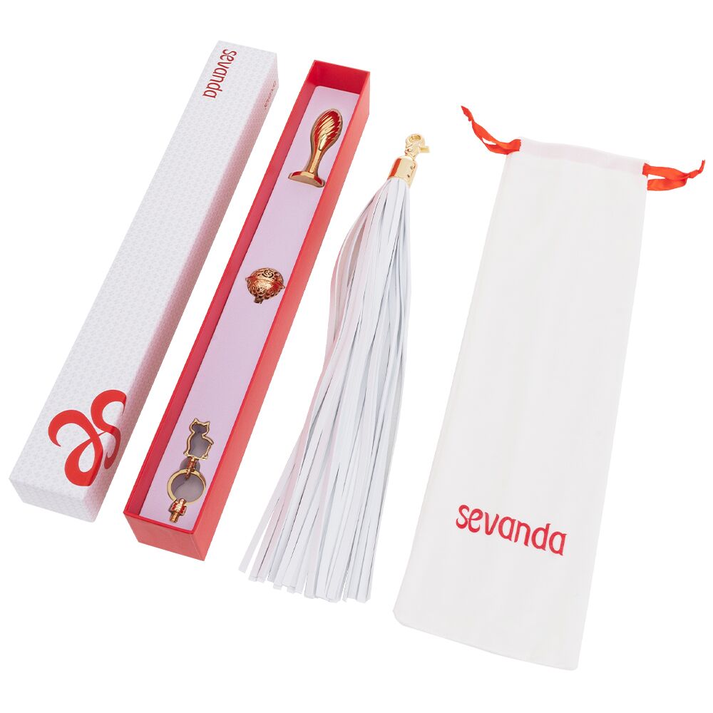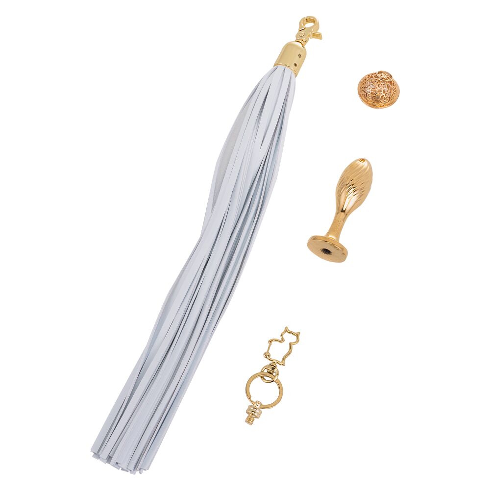 Металева анальна пробка Хвіст поні LOCKINK SEVANDA White Pony-Tail Anal Pear-shape Plug