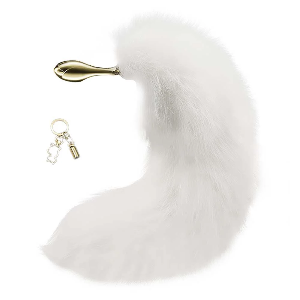Металева анальна пробка Лисячий хвіст LOCKINK SEVANDA White Fox-Tail Anal Rose-shape Plug