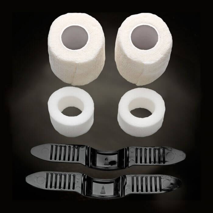 - Два самофіксуючі бинти (4 м на 6 см) – ці бинти дозволяють легко та швидко зафіксувати екстендер на потрібній ділянці. Вони мають високу еластичність і забезпечують надійну підтримку без зайвого тиску.