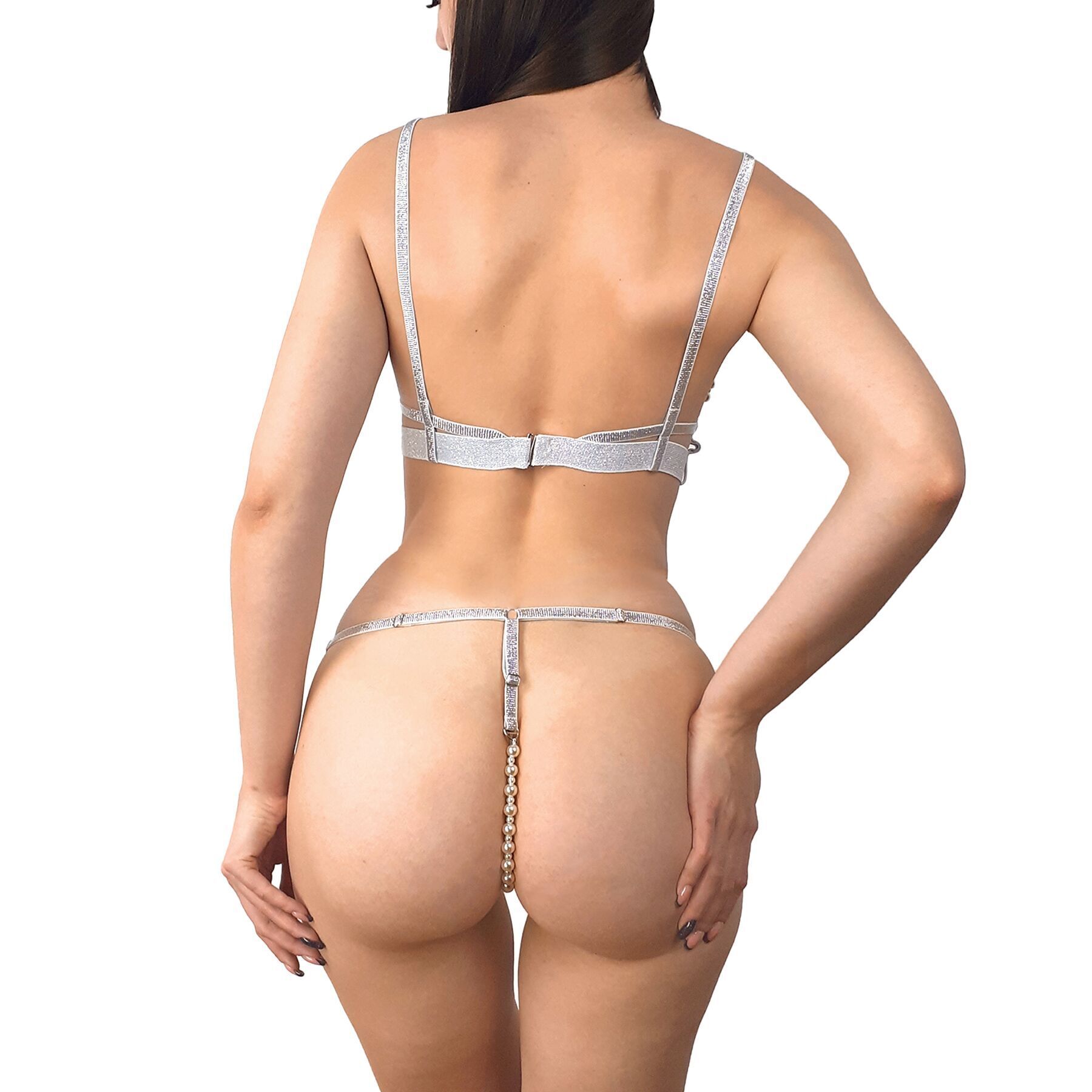 Цей комплект створений для того, щоб підкреслити ваші природні форми та зробити акцент на найпривабливіших частинах тіла. Білий колір символізує чистоту та невинність, але в поєднанні з відвертим дизайном надає йому грайливого і спокусливого вигляду.