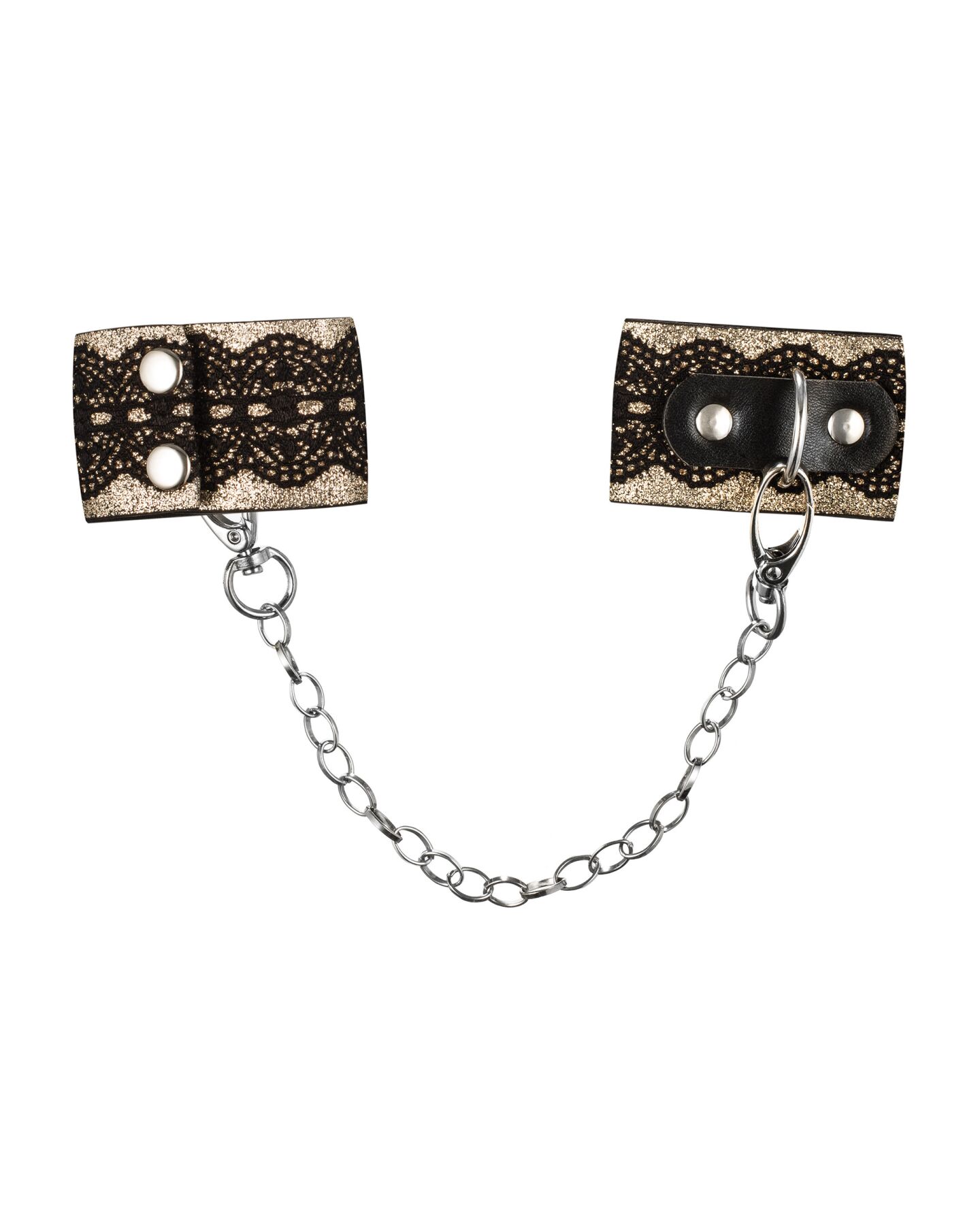 Ці наручники не лише естетично привабливі, але й функціональні. Вони оснащені двома кнопками-застібками, що дозволяють швидко й зручно їх надіти та зняти. Невеликий ланцюг, що кріпиться за допомогою карабінів, додає елемент контролю, а також може бути відстебнутий за потреби, що робить аксесуар універсальним для різних сценаріїв.