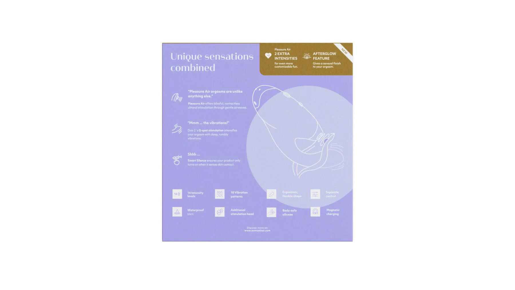 Womanizer Duo 2 має вражаючі технічні характеристики, які підкреслюють його функціональність: