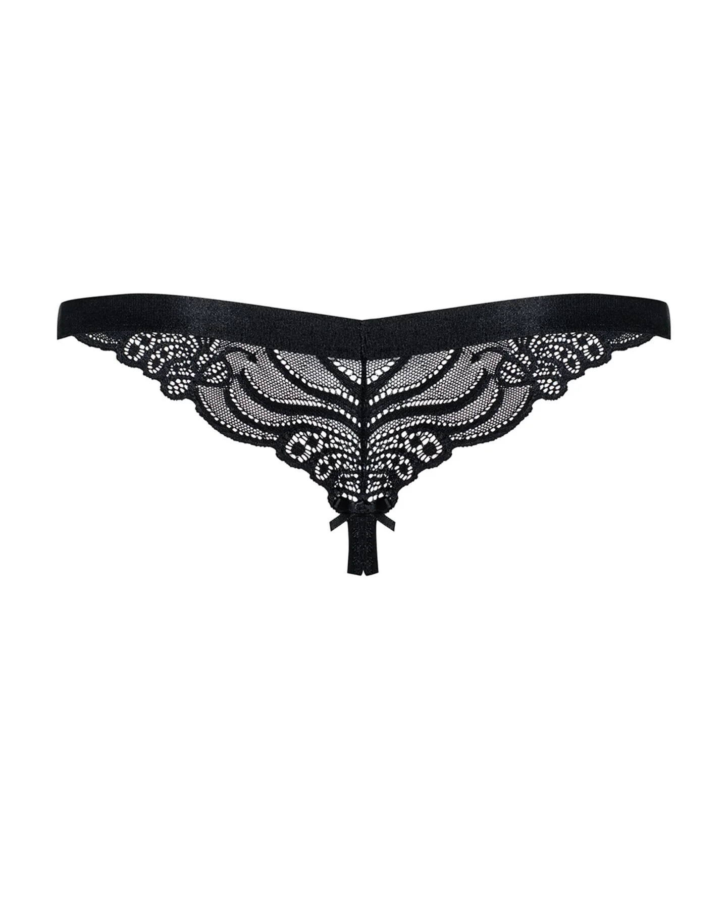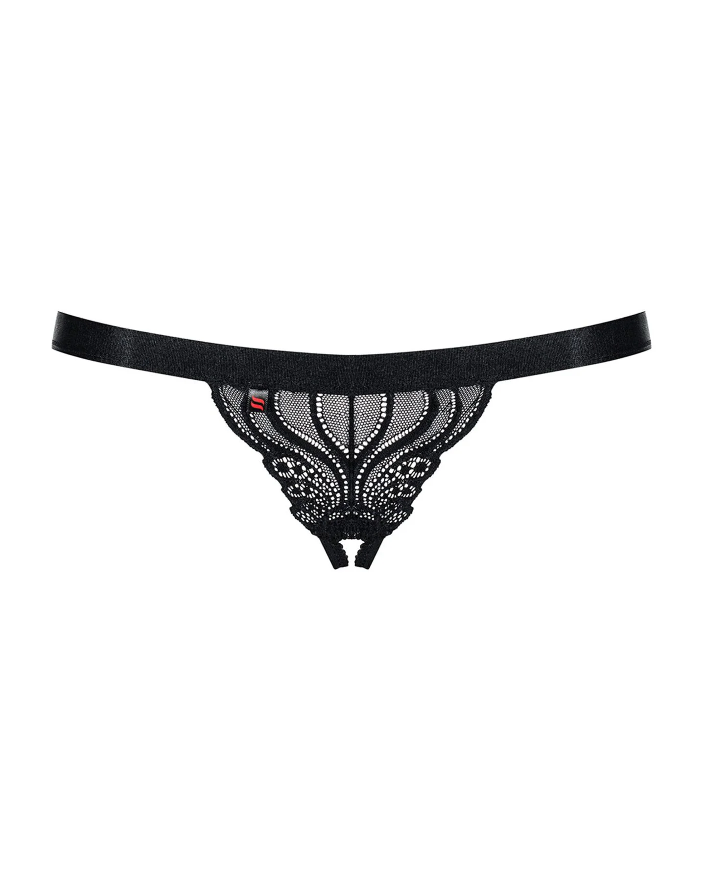 (SALE) Мереживні танги з доступом Obsessive 828-THC-1 crotchless thong L/XL, чорні