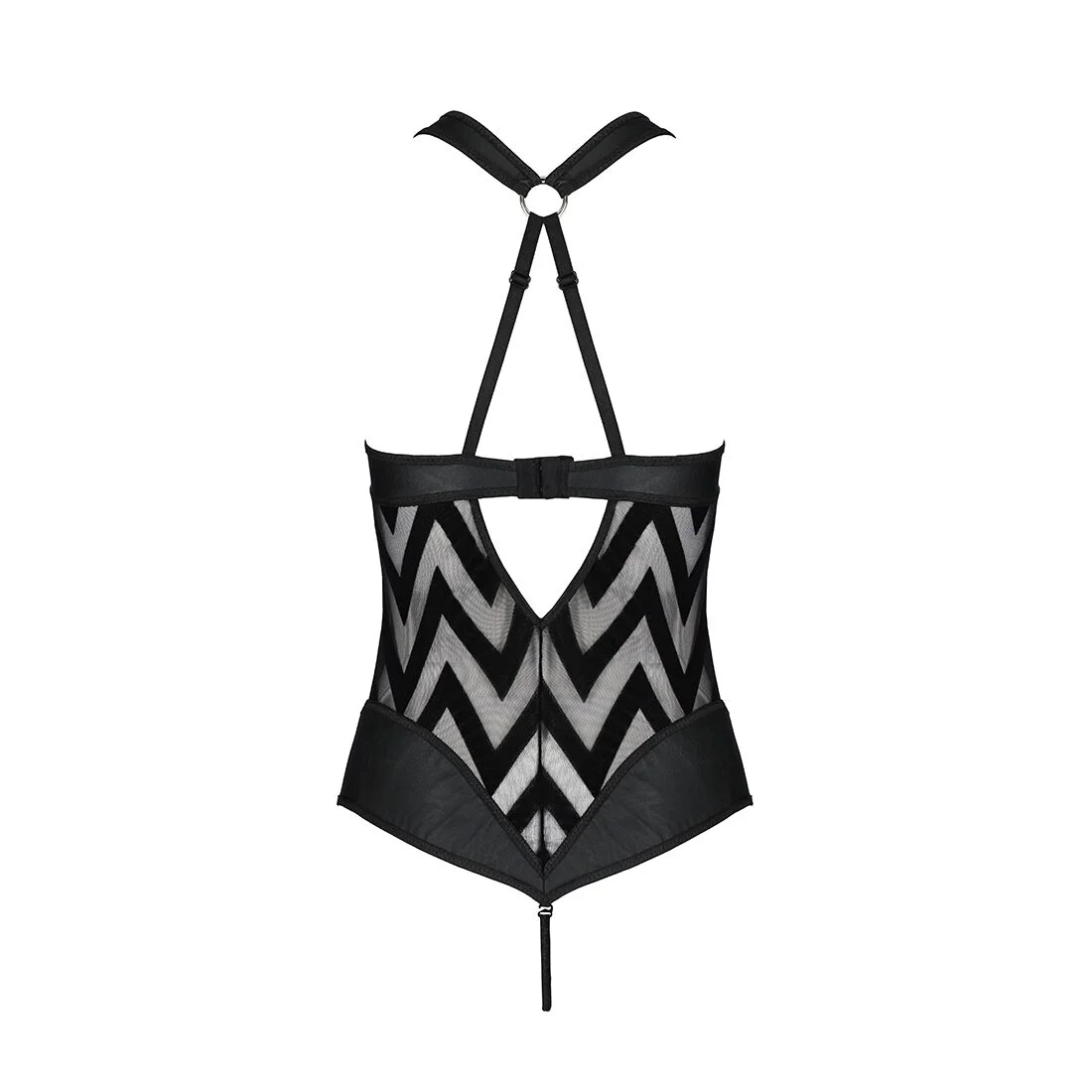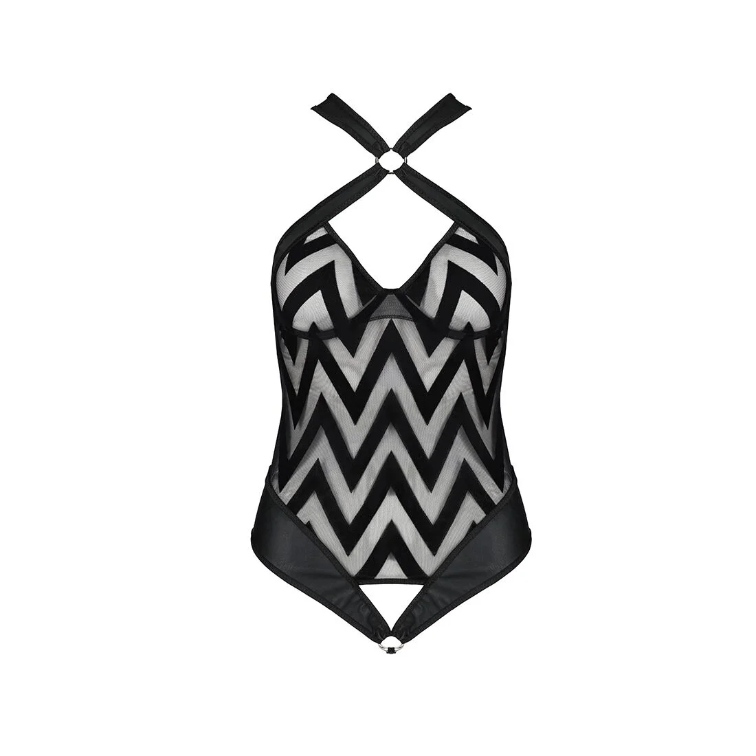 Сітчастий боді з халтером та ритмічним малюнком Passion Hima Body S/M, black