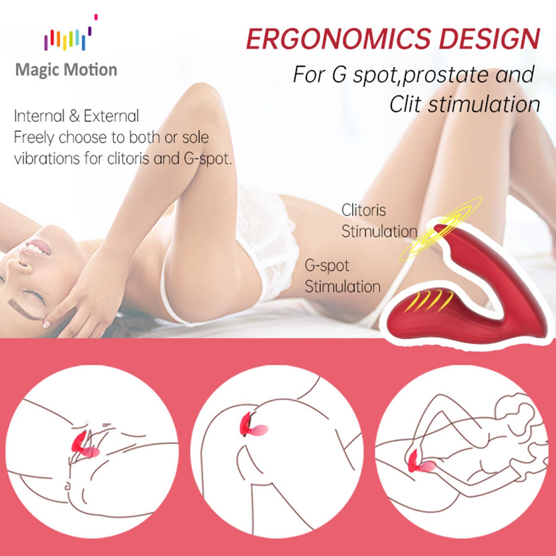 Magic Motion Umi Red обладнаний двома потужними, але тихими моторами, які працюють синхронно, забезпечуючи неперевершені вібрації. Ви можете вибирати з 10 різних режимів вібрації, що дозволяє експериментувати і знаходити те, що приносить найбільше задоволення.