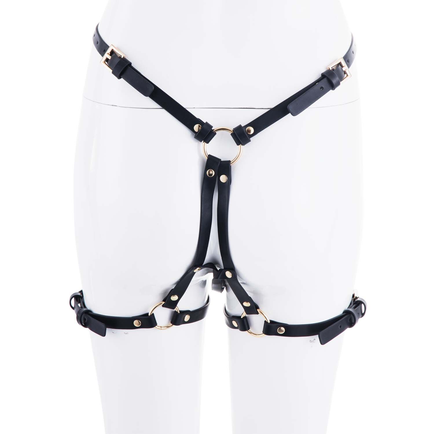 Модель виконана з високоякісної вичиненої шкіри чорного кольору. До трикутної передньої панелі заклепками прикріплено металеве кільце для фіксації фалоімітатора. На тілі цей «трикутник насолоди» тримається за допомогою ременів, обвитих навколо талії. На попереку вони з’єднані металевим кільцем, від якого відходять кріплення для ніг. Підігнати ремені по фігурі можна відразу в декількох місцях: на поясі, на ногах, а також у зоні лобка. Щоб скоригувати посадку, достатньо затягнути або послабити пряжки.