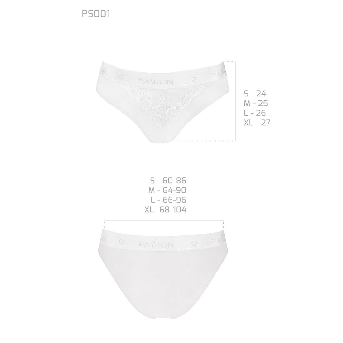 Трусики з широкою гумкою і мереживом Passion PS001 PANTIES XL, white