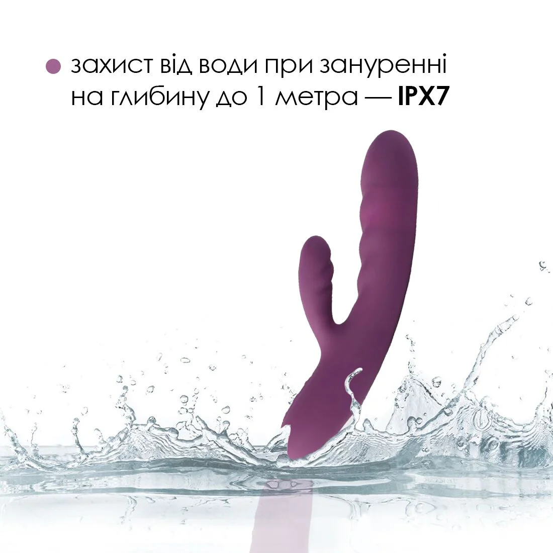 - Водонепроникність IPX7: Вібратор може бути використаний у ванні або душі, адже він витримує занурення у воду на глибину до 1 метра. Це відкриває нові горизонти для ваших водних ігор.