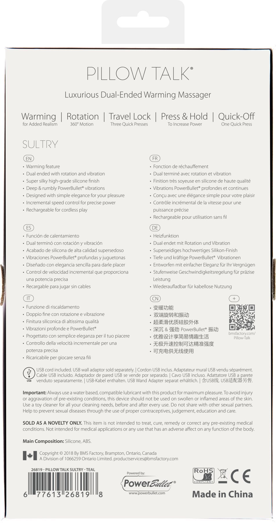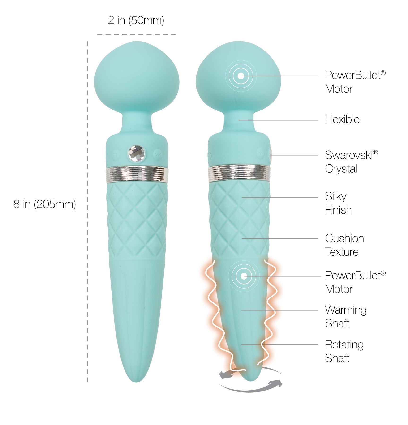Вібромасажер 2в1 PILLOW TALK – Sultry Teal, класичний масажер і вібратор з ротацією, підігрів