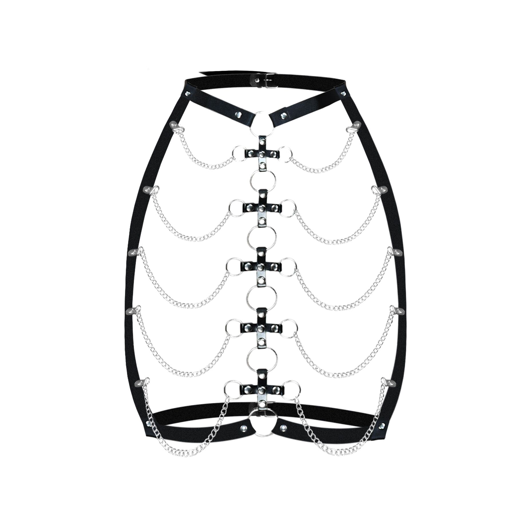 Металеві ланцюжки та хрести, які прикрашають портупею, не лише надають їй стильного вигляду, але й створюють загадковий образ, що підкреслює вашу жіночність та сексуальність. Кожен рух у цій портупеї буде супроводжуватися легким звуком ланцюжків, що додає ще більше чуттєвості та інтриги.