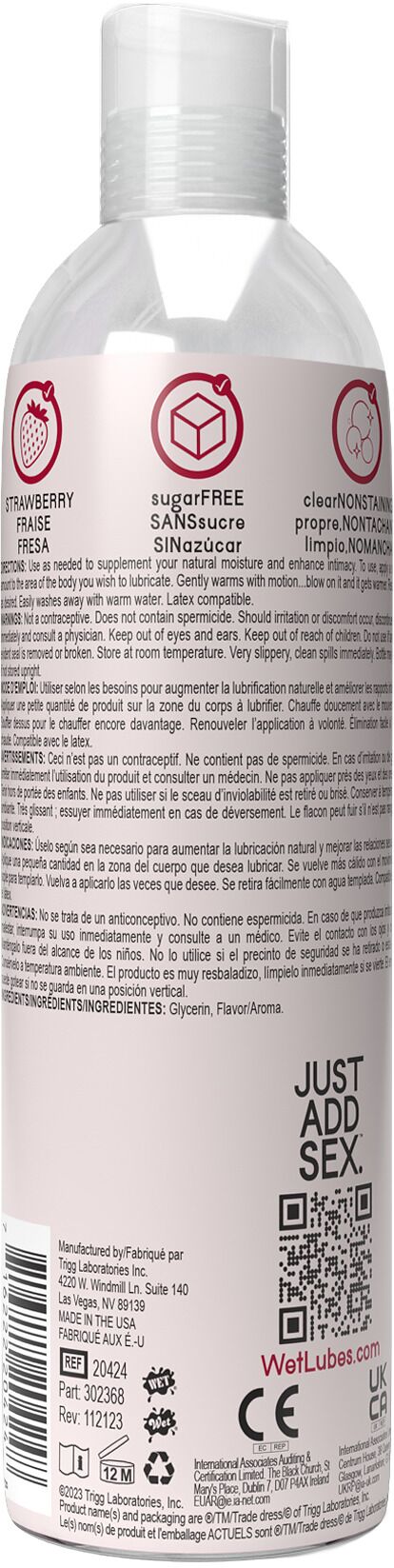 Wet Warming Strawberry сумісний із латексними презервативами, що робить його універсальним помічником у вашому інтимному житті. Лубрикант легко змивається теплою водою, що забезпечує зручність у використанні та очищенні.